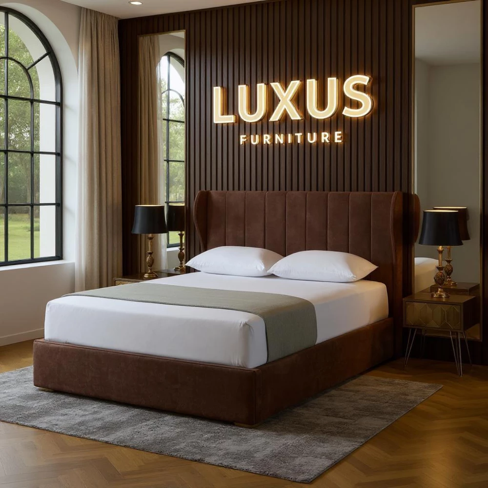 Graceful, refined, and effortlessly timeless—the Eldermont Wingback Bed Frame is designed for those who appreciate classic design with a modern touch. Its vertically channelled wingback headboard creates a structured, high-end look that elevates any bedroom, while soft, upholstered edges offer a cocoon of comfort.Upholstered in premium fabric and supported by polished wooden legs, the Eldermont blends vintage elegance with durable craftsmanship. With 40 beautiful fabric colours to choose from, you can personalise this statement piece to suit any style—from warm neutrals to bold, contemporary hues.Key Features: